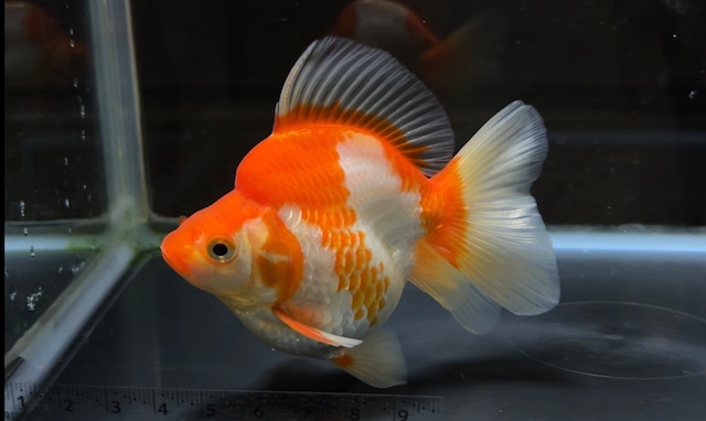 中国産 トリカラーショートテール琉金 全長 13〜14cm前後